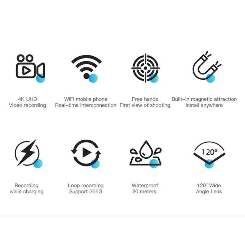 3.Adaptable Magnetic Functionality: This thumb camera includes a magnetic strap attachment to mount securely on clothes or bags, providing a 360 rotatable clip for improved portability and versatile usage in various settings
